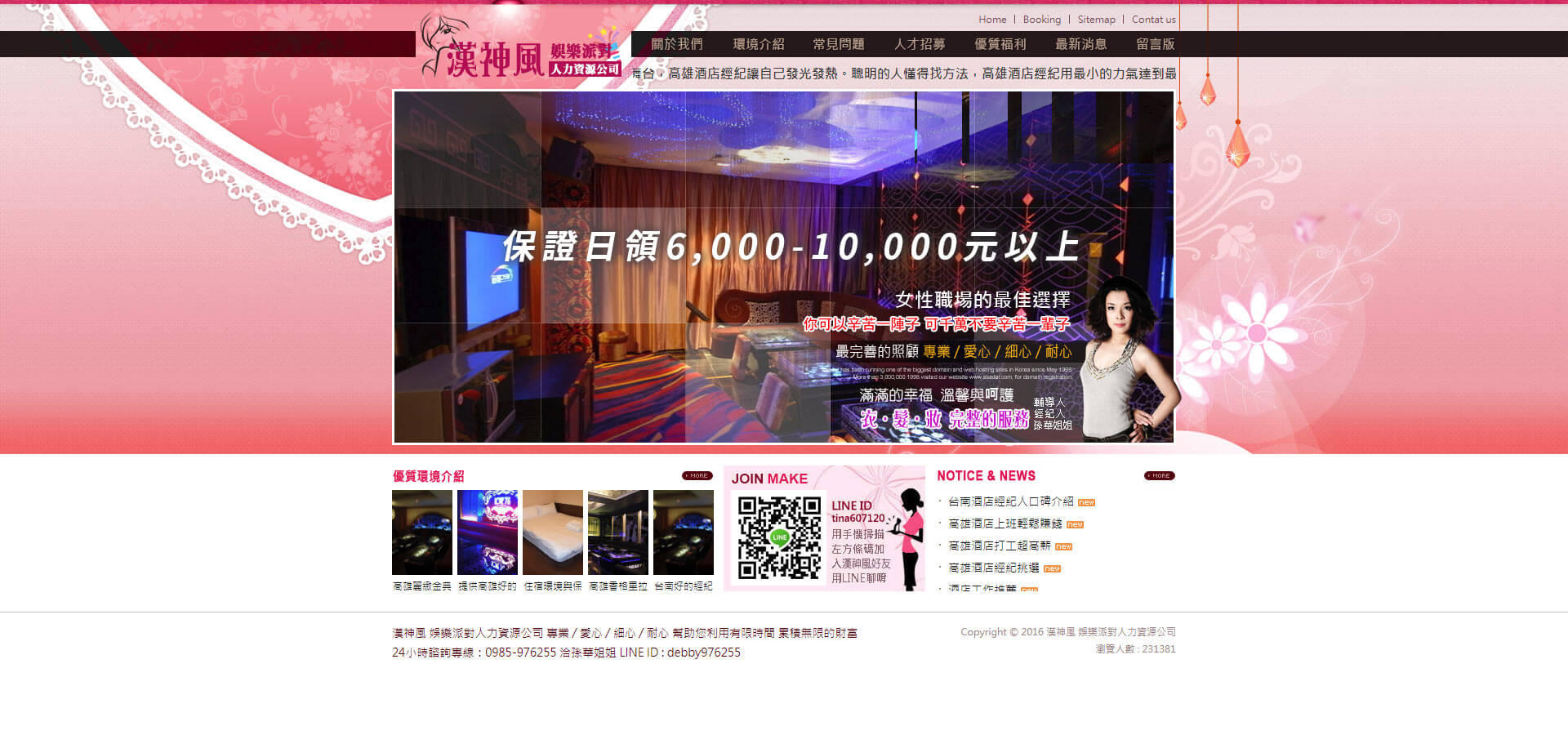 • 為何到酒店上班需要酒店經紀?經紀公司,高雄酒店經紀,整體造型化妝及美髮不會怎麼辦妳高雄派對小姐正因不景氣的年代找不到工作?也許妳人不逢時一直得不到老高雄招待所闆賞識;也許妳房貸、車貸、卡債、助學貸款快要把妳逼瘋。茫茫人海中如何挑選屬於妳自己專屬的舞台,讓自己發光發熱。聰明的人懂得找方法,用最小的力氣達到最大的成效,只要妳選擇,做自己的主人,豐富妳的人生,而...